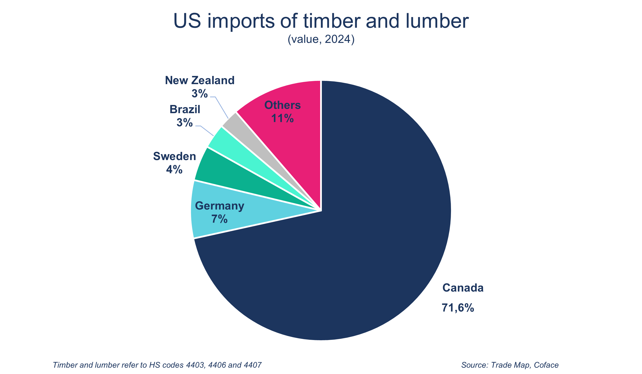Like pharmaceuticals, steel, and other products targeted by sector-specific measures, softwood lumber is receiving particular attention from the US administration due to the country's heavy dependence on imports. In 2024, the United States imported four times more softwood lumber than it exported. In addition, this type of wood is widely used in civil and military construction, making it a valuable commodity in the eyes of the U.S. government.
