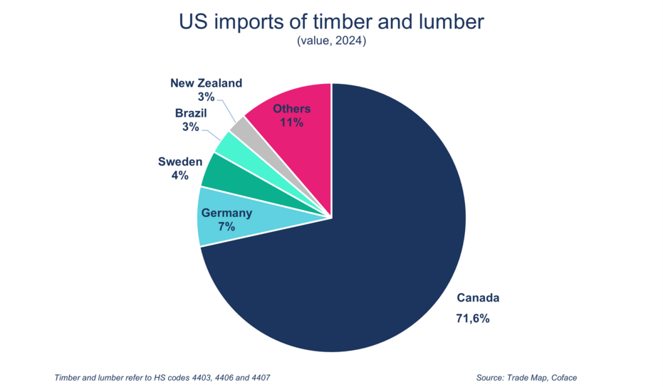 Even among import sources, few changes are expected. Supplying more than 70% of US imports of raw wood and lumber, Canada is on the front line when it comes to these softwood tariffs. This is especially true since the 10% tariffs are in addition to the countervailing and anti-dumping duties, against a backdrop of increasingly tense trade relations between Ottawa and Washington.  However, the impact on Canada needs to be qualified. First, a large portion of Canadian wood exports remain exempt from the 10% tariff thanks to the CUSMA, at least until its renegotiation scheduled for 2026. Furthermore, despite the increase in other taxes applied to Canadian softwood lumber, it retains a clear advantage: in 2024, its import price on the US market was about 50% lower than that of wood from the European Union. The increase in duties will therefore not be enough to erase Canada's competitive advantage.